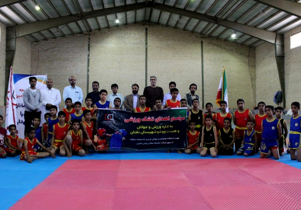 شرکت توسعه معادن پارس تامین، در راستای حمایت از نوجوانان و جوانان عزیز شهرستان تفتان استان سیستان و بلوچستان و ایفای نقش موثر در فعالیتهای اجتماعی، تشک ورزشی (تاتانی) ویژه ورزش وشوو، به اداره ورزش و جوانان و هیئت وشوو شهرستان تفتان اهدا کرد.